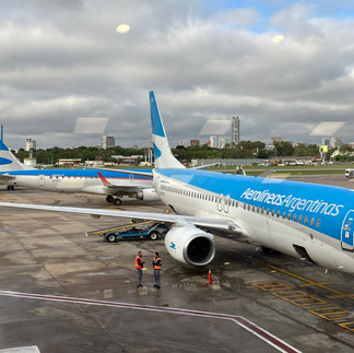 (River platt in Buenos Aires; our plane; entering the Iguazú National park)