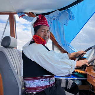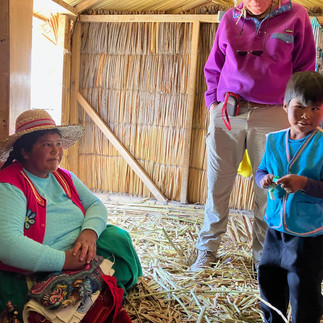 We succumbed to a traditional boat ride serenaded by the kids singing songs they learn at school on the main land; often steering their boats themselves to get there... and Simon bought a Andean hanging made by the leaders wife.