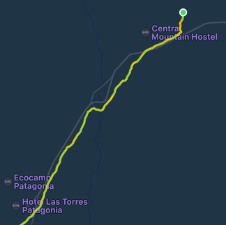 (Route; start; base of towers at frozen lago Torres; route up (before watch died of cold!))
