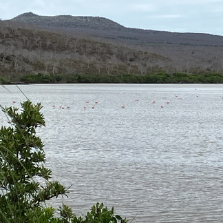 Seeing a line of buoys, in a lagoon saddled between dead tree lined volcanic cones, more control I thought as walked through yet more dead trees. So the buoys were pink flamingos, pink from eating the beta carotene in shrimp, and the trees (Palo santo incense trees) are in stasis kept alive by the moss and lichen until it rains! They bloom about 2weeks after rain apparently; the wood is that burned in church.