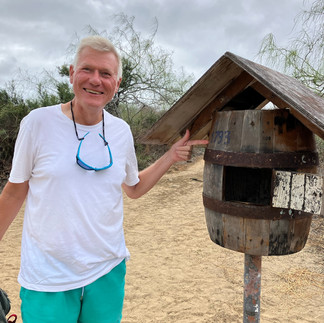 British whaling ships would spend years at sea, hunting whales to turn into valuable oil. In 1793 they left a wooden whiskey barrel on Floreana island. The system was simple: any passing sailor could leave a letter there, but he also had to check if there was any mail that he might be able to deliver himself when he returned home. Los gringos eschew modern communication and follow this ancient tradition today... so at some distant point in the future dad and our offspring may get a post card!