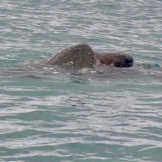 Back in the boat, then a quick change for snorkelling in the same place. Cold before we started, even the salt water pre-shower didn't help! Yep I was first to succumb again, no feeling in my digits! I almost needed rescuing but I got the cramp under control and even managed to swap dinghy's! I did however see many fish, shoals, nursery sharks and a big fish I don't want to think about ... shark? The highlight was landing in a scene from finding Nemo, with a large turtle feeding on algae amongst shoals of king angel fish and other pretty ones, whilst a huge rainbow fish patrolled!
