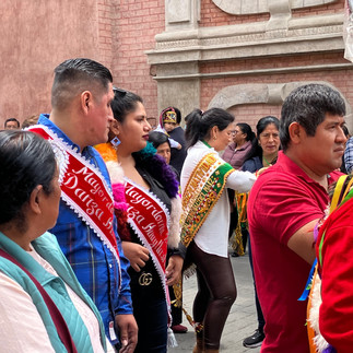 Just as we emerged from peeking at mass in the just amazing ornate guilded frescoed San Francisco cathedral, and wandering through the rather gruesome ossery in the convent catacombs we heard music. Spilling into the streets after mass were musicians, drummers and dancers, all bedecked in colourful costumes and traditional dress. An intoxicating blend of Catholic and Andean spiritual beliefs, culture and tradition; an integral part of Peruvian society apparently. Celebrating the virgin of Natividad with songs in indigenous languages, the festivities continued with a procession; her image being paraded through the city and around the main parliament square, accompanied by the dancers and musicians. The dancers swept me up corralling me and other ladies, quite unexpectedly! These masked dancers appeared to be mocking the Spanish!