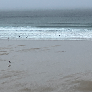 Thats because the wind picked up and the heavens opened; mile up mile of driving horizontal rain into Newquay. The road welcome after the wet windy cliff path. Drenched, drowned rats checked in for a welcome hot shower.