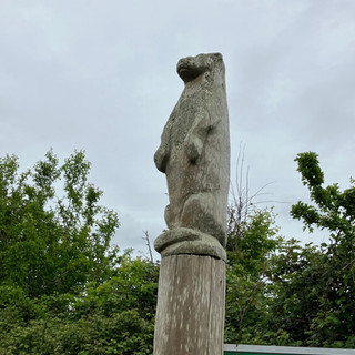 We took a taxi to the start of the path.(the extra 3miles walk got the thumbs down!) Despite the mizzle we enjoyed walking along the beach and dunes across Woolacoombe bay. We could just about make out Lundy Island from Baggy point as we rounded the headland, where a strange pole turned out to be an air/sea rescue practice aid.